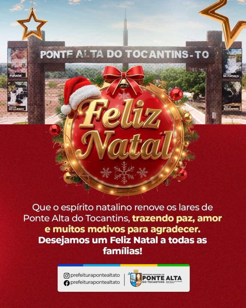 Feliz Natal, Ponte Alta do Tocantins! Que o espírito natalino renove cada lar, fortalecendo a fé, a união e a esperança.