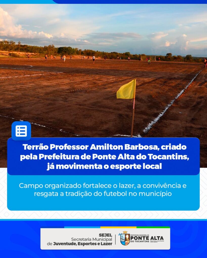 O esporte segue fortalecendo a convivência e o lazer na comunidade. Após mais de 12 anos sem a modalidade terrão, a Prefeitura Municipal de Ponte Alta do Tocantins, por meio da Secretaria Municipal de Esportes, Juventude e Lazer, criou o Campo de Terrão Professor Amilton Barbosa, que já vem movimentando o esporte local e sendo utilizado por desportistas em treinos e partidas amistosas.