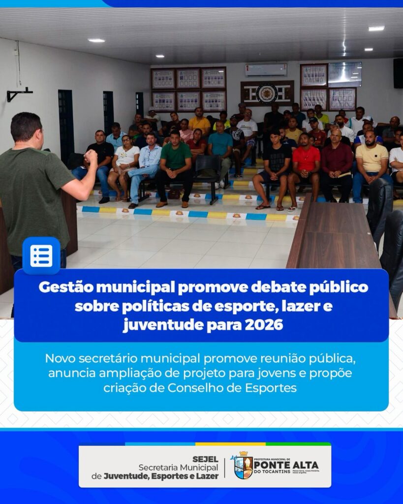 A gestão municipal de Ponte Alta do Tocantins promoveu um importante debate público para discutir as políticas de esporte, lazer e juventude que irão nortear as ações de 2026.