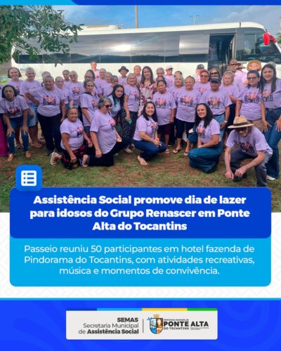 Cuidado, alegria e valorização da melhor idade! A Secretaria Municipal de Assistência Social promoveu um dia especial de lazer para os idosos do Grupo Renascer, em Ponte Alta do Tocantins. A ação reuniu participantes do Serviço de Convivência e Fortalecimento de Vínculos (SCFV) em um momento de integração, diversão e fortalecimento dos laços de amizade.… Continue lendo DIA DE LAZER REÚNE IDOSOS DO GRUPO RENASCER