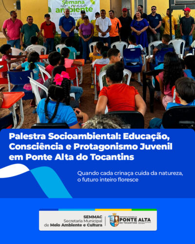 A Prefeitura Municipal de Ponte Alta do Tocantins, por meio da Secretaria de Meio Ambiente, realizou uma palestra socioambiental com os alunos da rede municipal de ensino, em alusão à Semana do Meio Ambiente, fortalecendo as ações de educação ambiental não formal no município. A atividade teve como objetivo sensibilizar e ampliar a compreensão dos… Continue lendo Palestra Socioambiental: Educação, Consciência e Protagonismo Juvenil em Ponte Alta do Tocantins