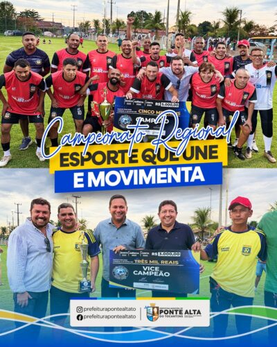 A bola rolou, a torcida vibrou e o esporte regional brilhou! Em uma final de tirar o fôlego, decidida nos pênaltis, o Novo Acordo Master venceu o Liberal e levantou o troféu do campeonato regional. A Prefeitura de Ponte Alta do Tocantins segue incentivando o esporte, movimentando a comunidade e abrindo espaço para novos talentos.… Continue lendo CAMPEONATO REGIONAL