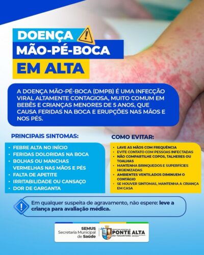 Doença Mão-Pé-Boca em alta! Redobre os cuidados com as crianças, observe os sintomas e, se houver qualquer piora, procure a unidade de saúde. Prevenção e atenção salvam vidas.